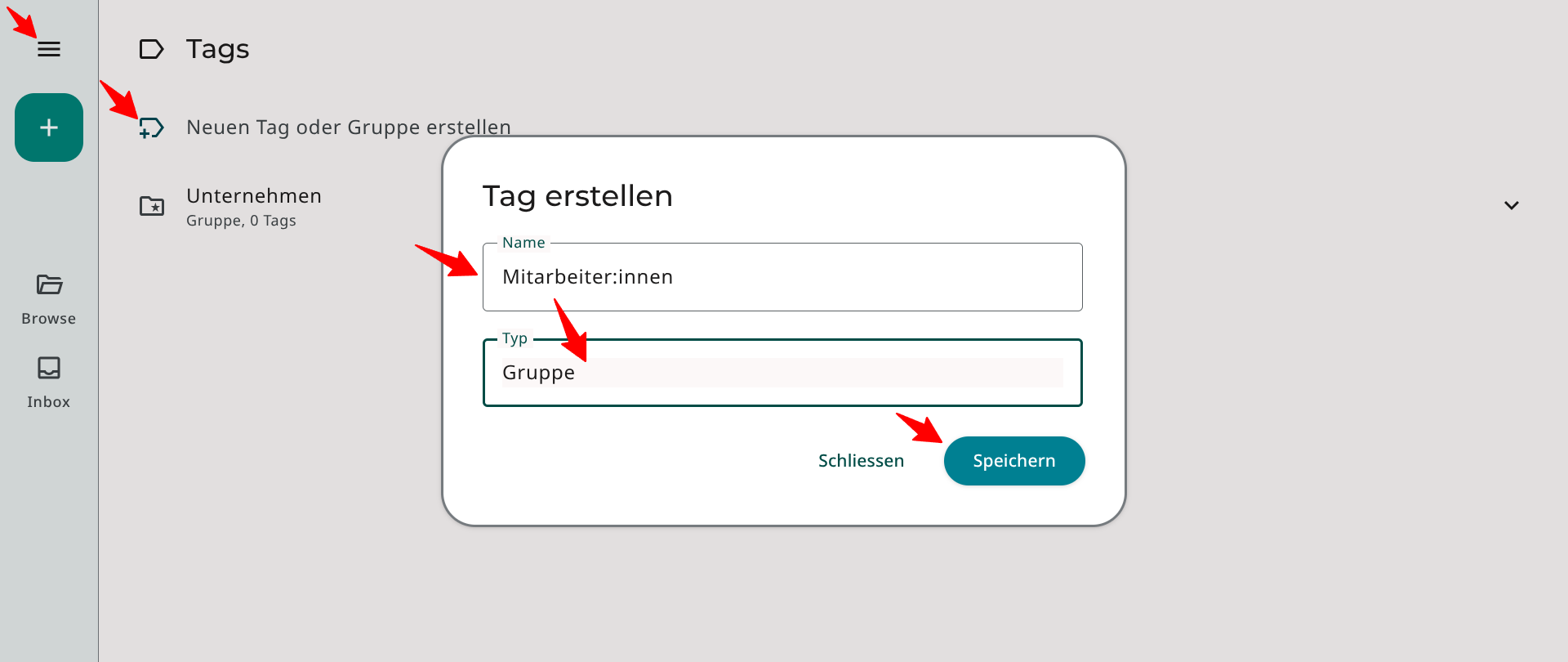 Therefore, we must first create the following two groups in the tag management («Tags» in the main menu):